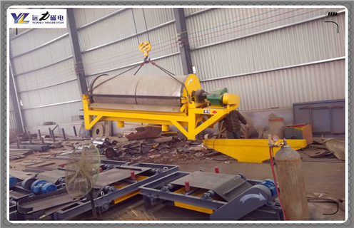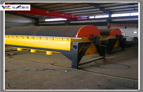 4、干式磁選機的磁系,采用優質鐵氧體材料或與稀土磁鋼復合而成,筒表平均磁感應強度為100~600mT。根據用戶需要,可提供順流、半逆流、逆流型等多種不同表強的磁選。本磁選機具有結構簡單、處理量大、操作方便、易于維護等優點。